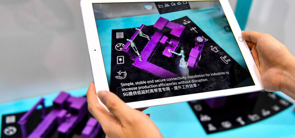 2019中國(guó)工業(yè)互聯(lián)網(wǎng)大會(huì)暨粵港澳大灣區(qū)數(shù)字經(jīng)濟(jì)大會(huì)上,工作人員向媒體展示“5G+AR”工業(yè)應(yīng)用