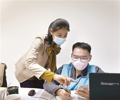 圖為張曉菲(左)在抗疫工作一線。