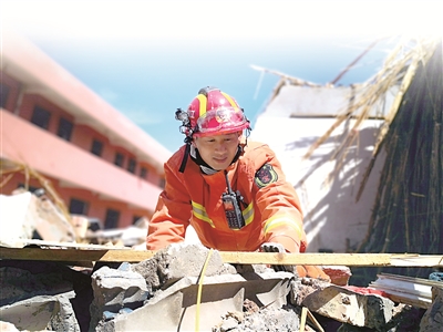 圖為丁良浩在甘肅蘭州參加全國(guó)地震救援培訓(xùn)。