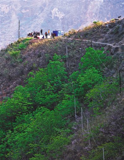 “懸崖村”村民早早集合,等待搬出大山,搬入新居。宋豪新 華小峰攝影報道