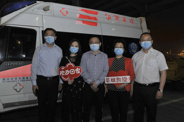 四川省衛(wèi)生健康委黨組成員、副主任宋世貴受省應(yīng)對新冠肺炎疫情防控應(yīng)急指揮部副指揮長、省衛(wèi)生健康委黨組書記沈驥、省應(yīng)對新冠肺炎疫情防控應(yīng)急指揮部副指揮長、省衛(wèi)生健康委主任何延政的委托,與四川大學(xué)華西醫(yī)院副院長劉倫旭率領(lǐng)相關(guān)人員到機(jī)場迎接。宋世貴表示,四川堅(jiān)決貫徹落實(shí)黨中央部署,堅(jiān)持全國一盤棋,一方有難,八方支援,選派優(yōu)秀的專家進(jìn)行戰(zhàn)疫馳援。這次大災(zāi)來了之后,康焰剛從武漢戰(zhàn)斗回到四川不到3天,又受國務(wù)院應(yīng)對新型冠狀病毒肺炎疫情聯(lián)防聯(lián)控機(jī)制醫(yī)療救治組委派,轉(zhuǎn)戰(zhàn)綏芬河、牡丹江,一直在前方堅(jiān)持戰(zhàn)疫,工作很出色,是全省衛(wèi)生健康系統(tǒng)的優(yōu)秀代表,也得到了國家衛(wèi)健委的充分肯定。