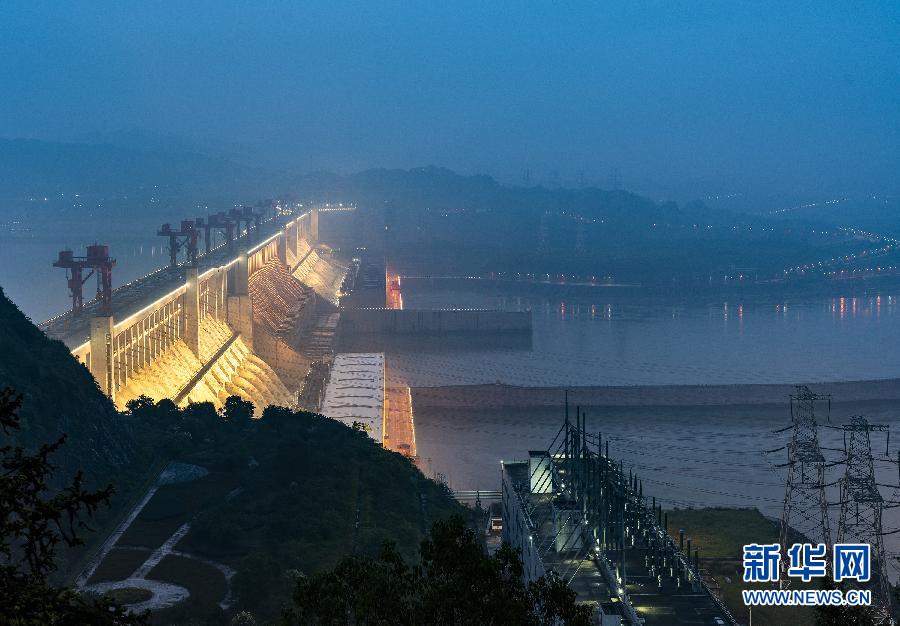 6月8日拍攝的三峽大壩泄洪閘夜景。 6月8日17時,三峽水庫水位消落至144.99米,提前兩天完成消落任務。據(jù)長江水利委員會介紹,三峽水庫本輪消落自2019年12月開始,水位自正常蓄水位175米左右消落至汛限水位145米,共消落水位約30米,騰出防洪庫容221.5億立方米,為迎戰(zhàn)長江流域可能發(fā)生的洪水提供安全保障。 新華社發(fā)(向紅梅 攝)