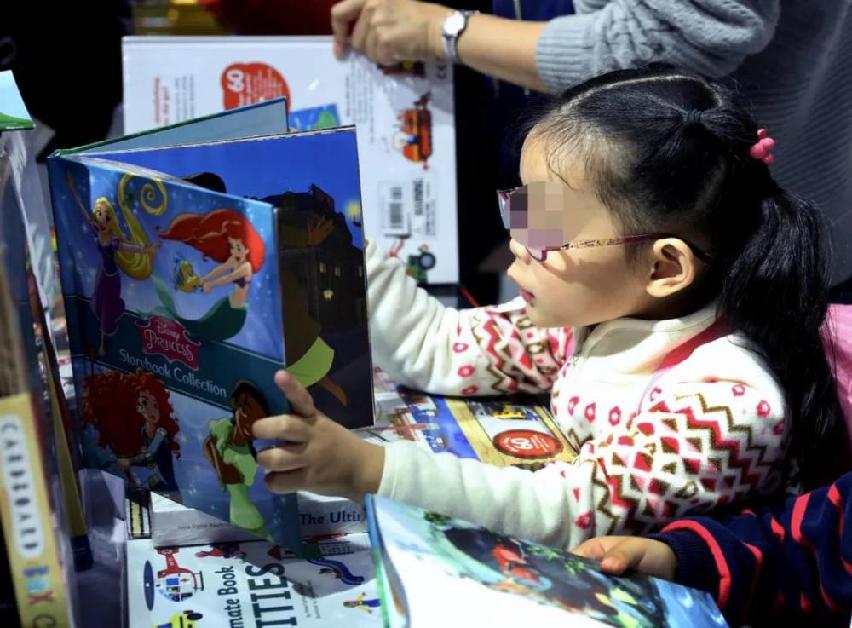 小讀者在童書(shū)展的公共閱讀區(qū)讀書(shū)