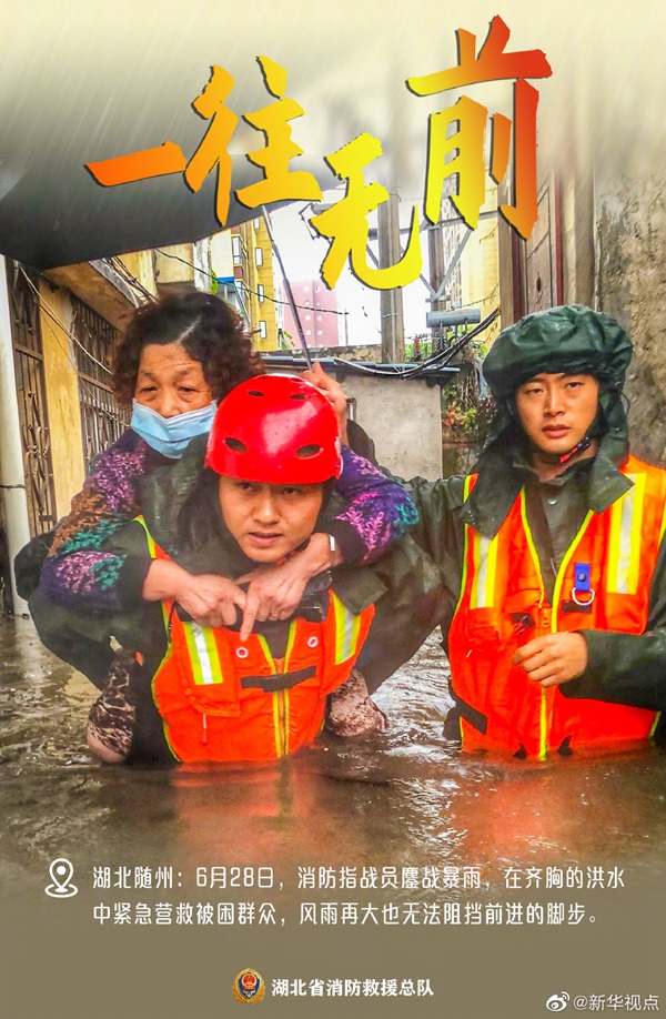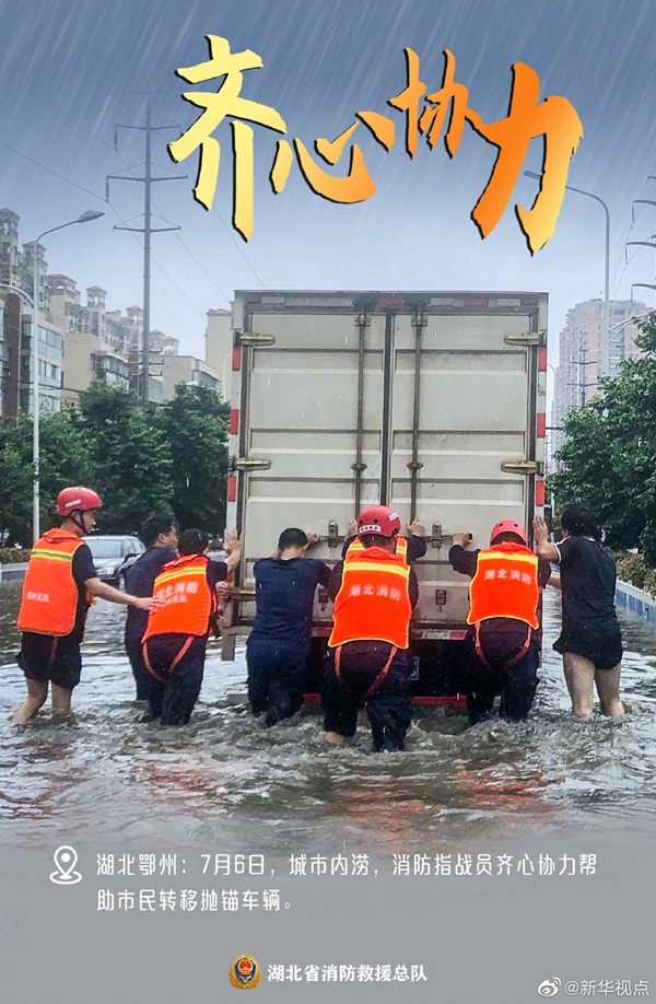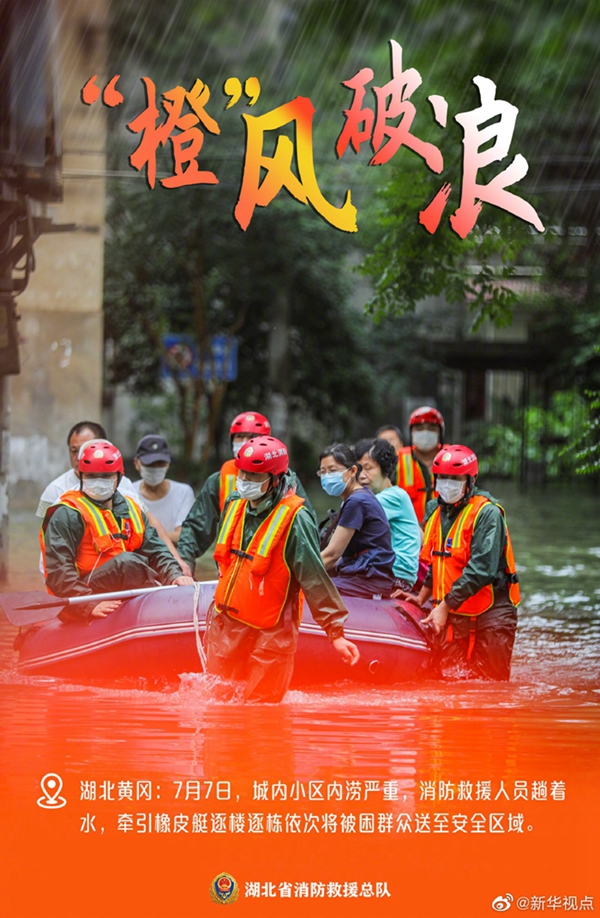湖北近期遭遇持續(xù)強(qiáng)降雨天氣,部分地區(qū)出現(xiàn)洪澇災(zāi)害。洪水襲來(lái),在救援現(xiàn)場(chǎng)奔波忙碌的消防救援人員,始終沖在一線,“橙”風(fēng)破浪,守護(hù)著人民群眾的生命和財(cái)產(chǎn)安全。這抹“橙”,成為災(zāi)區(qū)人民心中最溫暖的底色。向“逆行者”致敬?。ㄓ浾吡航◤?qiáng))