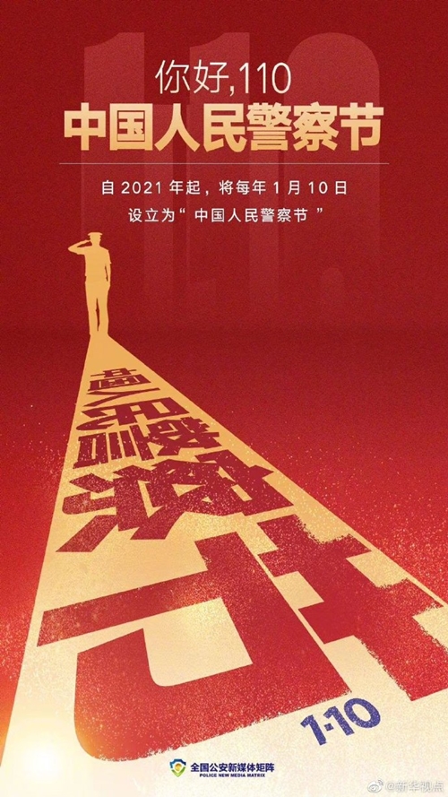 記者從公安部獲悉,近日,經(jīng)黨中央批準(zhǔn)、國(guó)務(wù)院批復(fù),自2021年起,將每年1月10日設(shè)立為“中國(guó)人民警察節(jié)”。這是在國(guó)家層面專門為人民警察隊(duì)伍設(shè)立的節(jié)日。