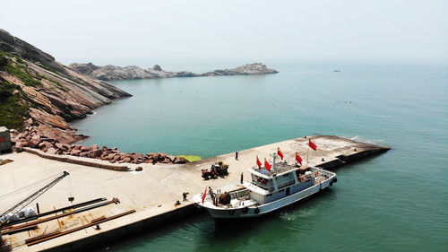 7月16日,“擁軍船”在蘇山島??浚o(wú)人機(jī)照片)。新華社記者 王凱 攝