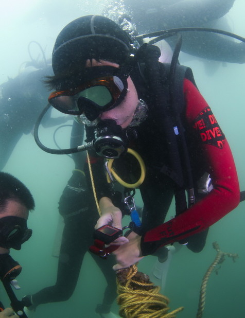 ▲方堅澤進行潛水結(jié)束后的安全停留。