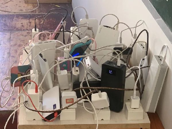每間教室的講臺旁邊都放著一排插線板,上面插滿了充電寶。據(jù)學(xué)生介紹,學(xué)校封禁了宿舍內(nèi)的插電孔,他們只能將充電寶在教室充滿電后帶回宿舍用?!坝袝r候教室里充電的地方滿了,要么排隊,要么去超市花錢充。”由于宿舍沒插電孔、沒網(wǎng),這里的大學(xué)生幾乎沒人用電腦。小許說,學(xué)校說宿舍不能充電是為了防火安全,但是如此管理未免太過“簡單粗暴”。