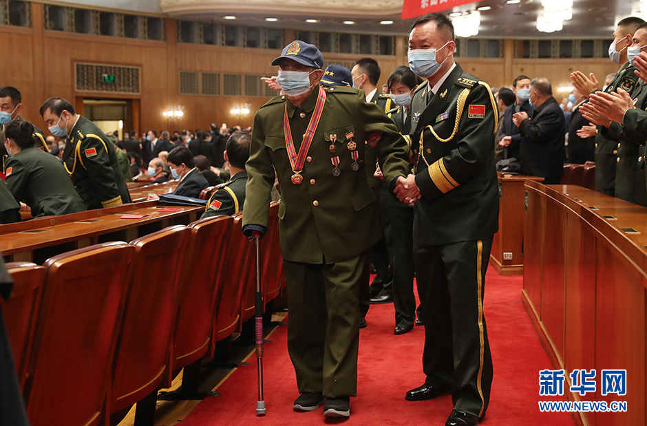 10月23日,紀(jì)念中國人民志愿軍抗美援朝出國作戰(zhàn)70周年大會(huì)在北京人民大會(huì)堂隆重舉行。圖為志愿軍老戰(zhàn)士、老同志入場。(新華網(wǎng) 翟子赫 攝)