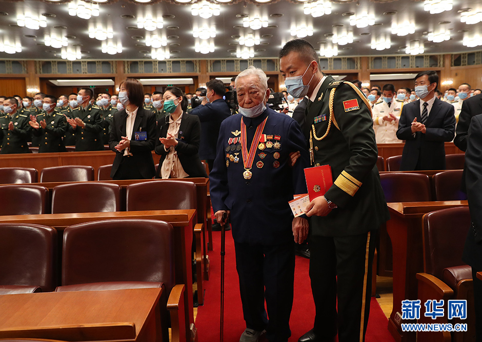 10月23日,紀(jì)念中國(guó)人民志愿軍抗美援朝出國(guó)作戰(zhàn)70周年大會(huì)在北京人民大會(huì)堂隆重舉行。圖為志愿軍老戰(zhàn)士、老同志入場(chǎng)。(新華網(wǎng) 翟子赫 攝)