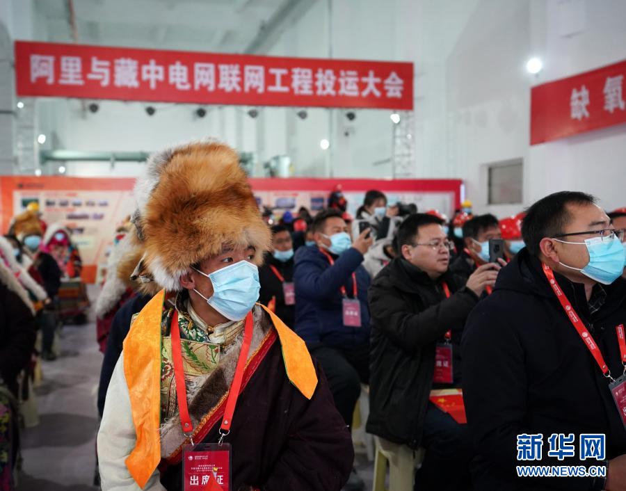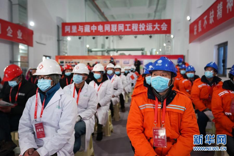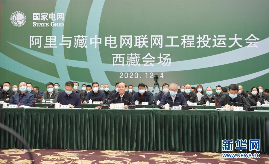 12月4日拍攝的西藏阿里與藏中電網(wǎng)聯(lián)網(wǎng)工程投運(yùn)大會(huì)霍爾220千伏變電站分會(huì)場(chǎng)。新華社記者 詹彥 攝