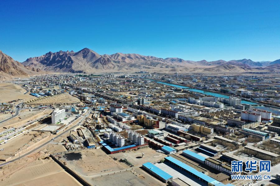 西藏阿里地區(qū)噶爾縣獅泉河鎮(zhèn)全景(12月2日攝,無(wú)人機(jī)照片)。新華社記者 詹彥 攝