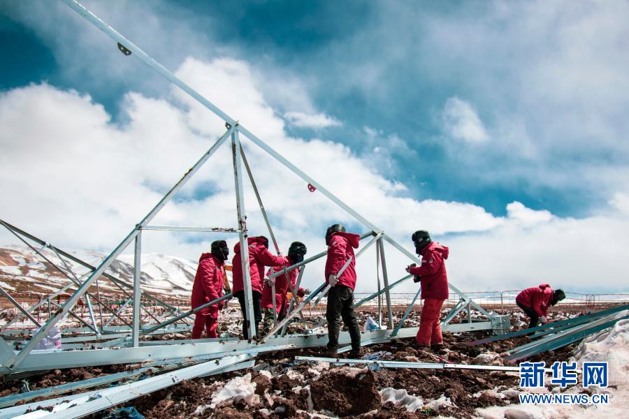 “施工人員服用保護(hù)心臟的藥,背著氧氣瓶上到山頂,工作時(shí)心跳一直保持在每分鐘120次以上,一個(gè)小時(shí)就得輪班下來?!弊T晉說,山頂?shù)奶鞖庾兓脽o(wú)常,有時(shí)晴朗,強(qiáng)烈的紫外線照得大家滿臉?biāo)?;有時(shí)一場(chǎng)大雪,有的工人會(huì)瞬間雪盲。