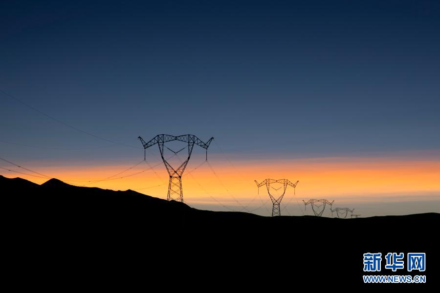 10月30日在西藏阿里地區(qū)普蘭縣拍攝的西藏阿里與藏中電網(wǎng)聯(lián)網(wǎng)工程輸電鐵塔。新華社發(fā)