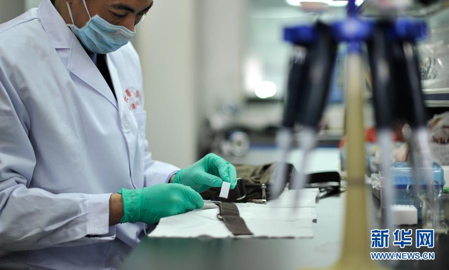 山東省濱州市公安局民對“2004.11.24”故意殺人案物證進(jìn)行DNA檢材提取(資料照片)。新華社發(fā)(公安部刑偵局供圖)