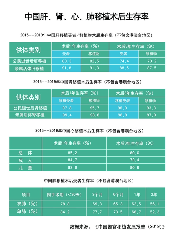 靈丹妙藥難尋就,須得妙手方回春。器官移植因其復(fù)雜程度、風(fēng)險之大,被譽(yù)為臨床醫(yī)學(xué)技術(shù)“王冠上的明珠”。黃潔夫介紹,5年來,中國器官移植術(shù)后生存率居國際前列。其中,公民逝世后器官捐獻(xiàn)肝移植受者術(shù)后生存率1年達(dá)83.3%,術(shù)后3年達(dá)74.4%;2018年心臟移植術(shù)后1年生存率達(dá)90.8%,高于國際心肺移植學(xué)會公布的85.4%;逝世后器官捐獻(xiàn)腎移植受者術(shù)后3年生存率為96.9%;2019年中國共完成9例兒童肺移植,創(chuàng)國內(nèi)年齡最小的兒童肺移植記錄(不包括港、澳、臺地區(qū))。