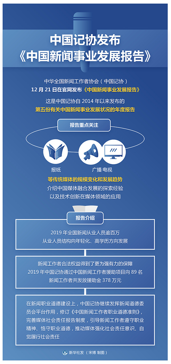 新華社北京12月21日電 中華全國新聞工作者協(xié)會(中國記協(xié))21日在官網(wǎng)發(fā)布《中國新聞事業(yè)發(fā)展報(bào)告》。這是中國記協(xié)自2014年以來發(fā)布的第五份有關(guān)中國新聞事業(yè)發(fā)展?fàn)顩r的年度報(bào)告。