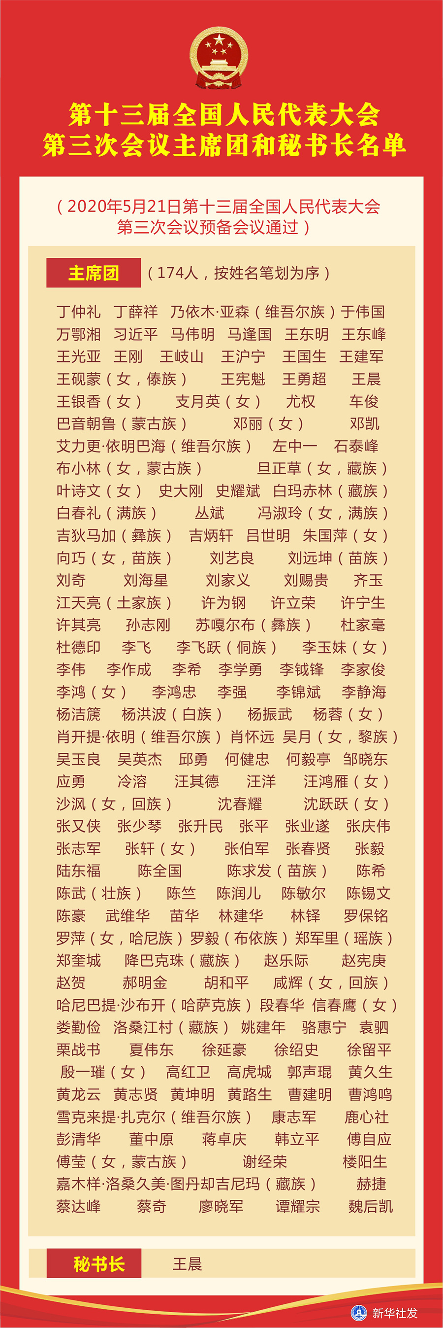 第十三屆全國(guó)人民代表大會(huì)第三次會(huì)議主席團(tuán)和秘書(shū)長(zhǎng)名單
