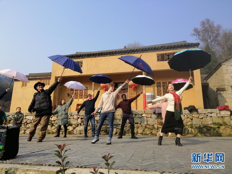 這是2020年12月19日,植國(guó)明、肖恩、瑞貝卡·尼什、烏俊杰與村民們一起練習(xí)舞蹈,迎接新年。新華社記者 劉方強(qiáng)攝