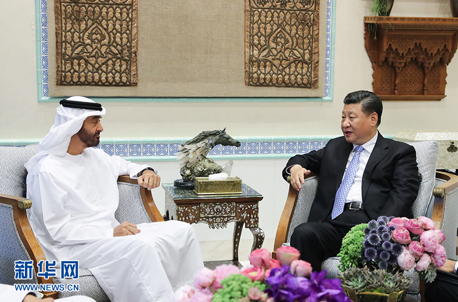 習(xí)近平愉快地回憶起中阿兩國友好交往的歷史。習(xí)近平指出,中阿傳統(tǒng)友好基礎(chǔ)扎實(shí)、歷久彌堅(jiān)。2015年王儲(chǔ)殿下訪華期間,我們共同規(guī)劃中阿關(guān)系發(fā)展藍(lán)圖,開啟了中阿關(guān)系新篇章。我這次訪問阿聯(lián)酋,我們雙方達(dá)成新的廣泛共識,我深感兩國發(fā)展全面戰(zhàn)略伙伴關(guān)系順應(yīng)潮流,大有可為。雙方要深化全方位合作,為兩國關(guān)系長遠(yuǎn)發(fā)展打下堅(jiān)實(shí)基礎(chǔ),推動(dòng)中阿全面戰(zhàn)略伙伴關(guān)系行穩(wěn)致遠(yuǎn)。