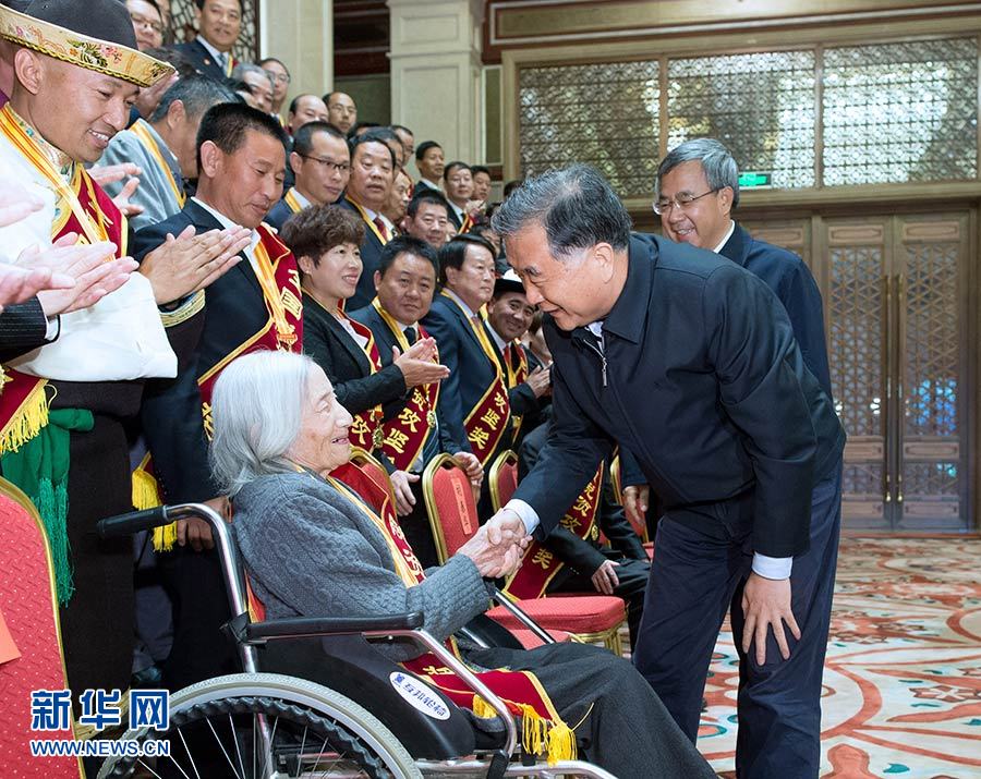 10月17日,中共中央政治局常委、全國政協(xié)主席汪洋在北京會見全國脫貧攻堅獎獲得者,并參觀“決勝2020”脫貧攻堅展。 新華社記者 劉彬 攝