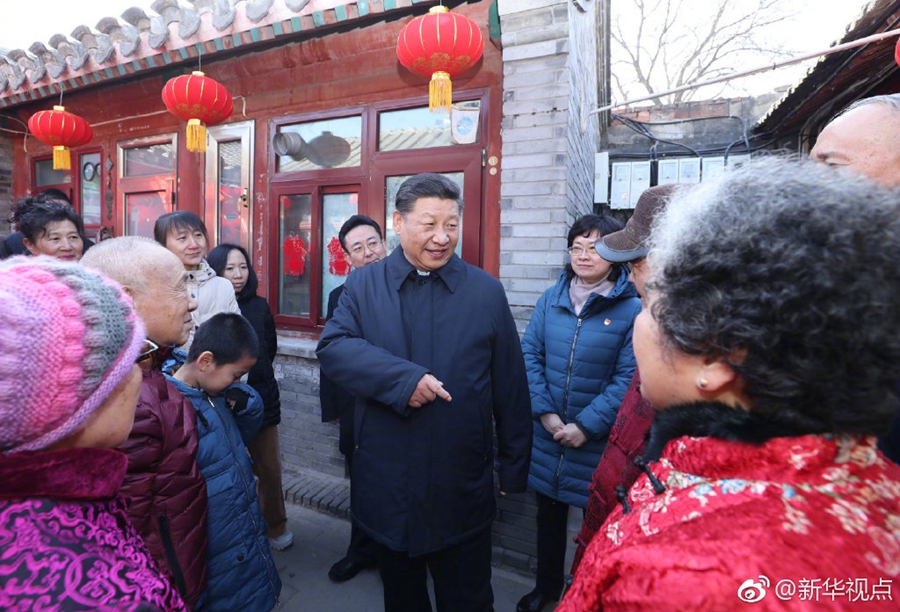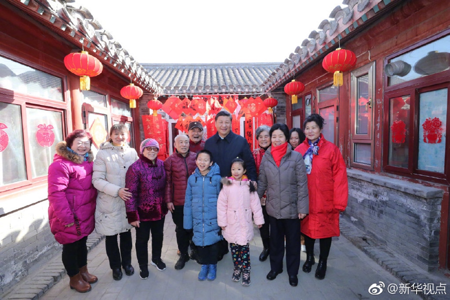 2月1日上午,習(xí)近平來到前門東區(qū),沿草廠四條胡同步行察看街巷風(fēng)貌,聽取區(qū)域規(guī)劃建設(shè)、舊城保護(hù)整治、人居環(huán)境改善等情況介紹,先后走進(jìn)兩個(gè)四合院看望,同這里的居民一起包餃子、炸饹馇、貼“?!弊帧⒘募页?,仔細(xì)詢問住房環(huán)境有沒有改善、年貨備齊沒有、生活還有什么困難,祝他們生活幸福、新春快樂。四合院里笑語(yǔ)歡聲,習(xí)近平對(duì)他們說,中國(guó)共產(chǎn)黨的追求就是讓老百姓生活越來越好。(記者張曉松、鞠鵬)