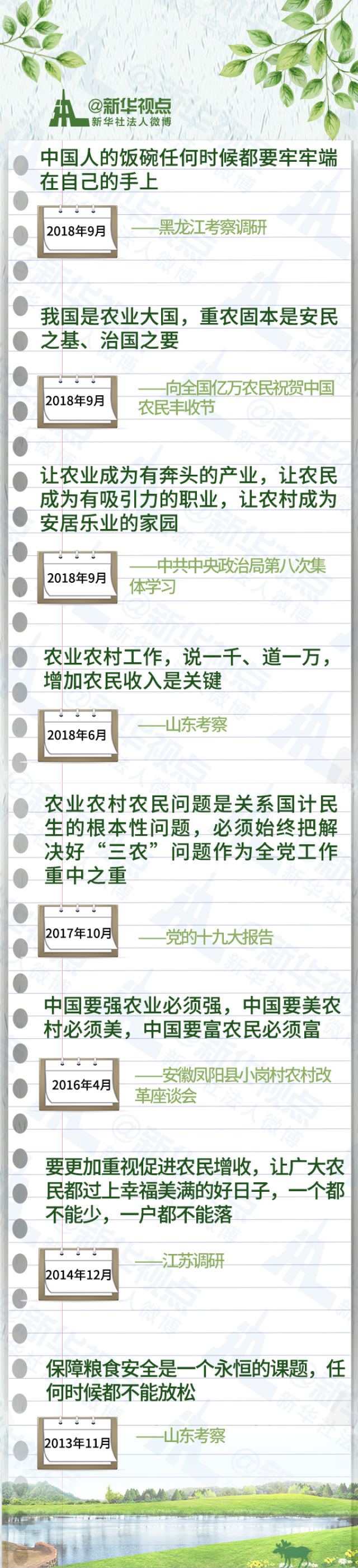 總書記情系“三農(nóng)”,無論是國內(nèi)考察調(diào)研,還是集體學(xué)習(xí)或出席會(huì)議,都對(duì)“三農(nóng)”工作提出過明確要求。