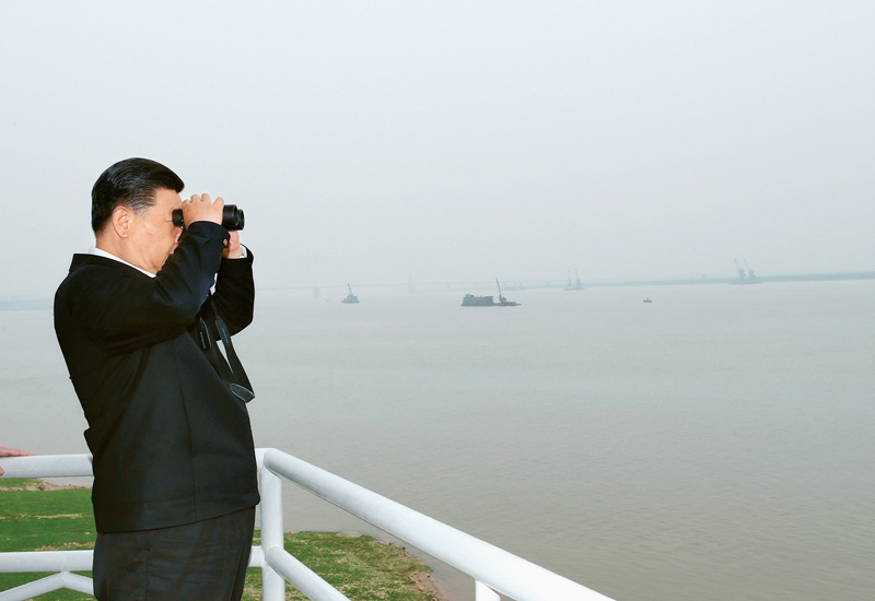 2018年4月26日下午,中共中央總書記、國家主席、中央軍委主席習(xí)近平在武漢主持召開深入推動長江經(jīng)濟帶發(fā)展座談會并發(fā)表重要講話。這是座談會前,習(xí)近平于25日上午乘船沿江察看兩岸生態(tài)環(huán)境和發(fā)展建設(shè)情況。 新華社記者 謝環(huán)馳/攝