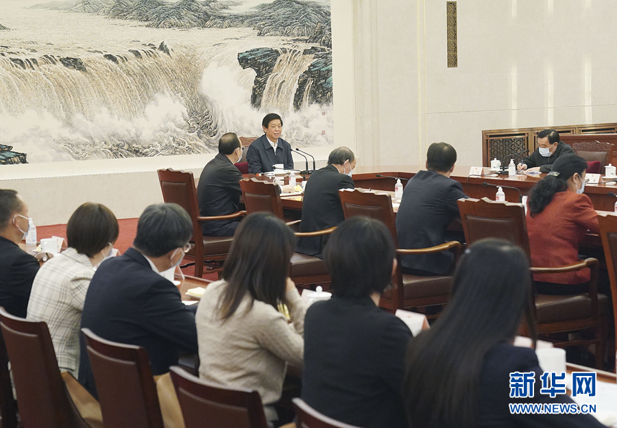 中共中央政治局委員、全國人大常委會副委員長王晨主持座談會。