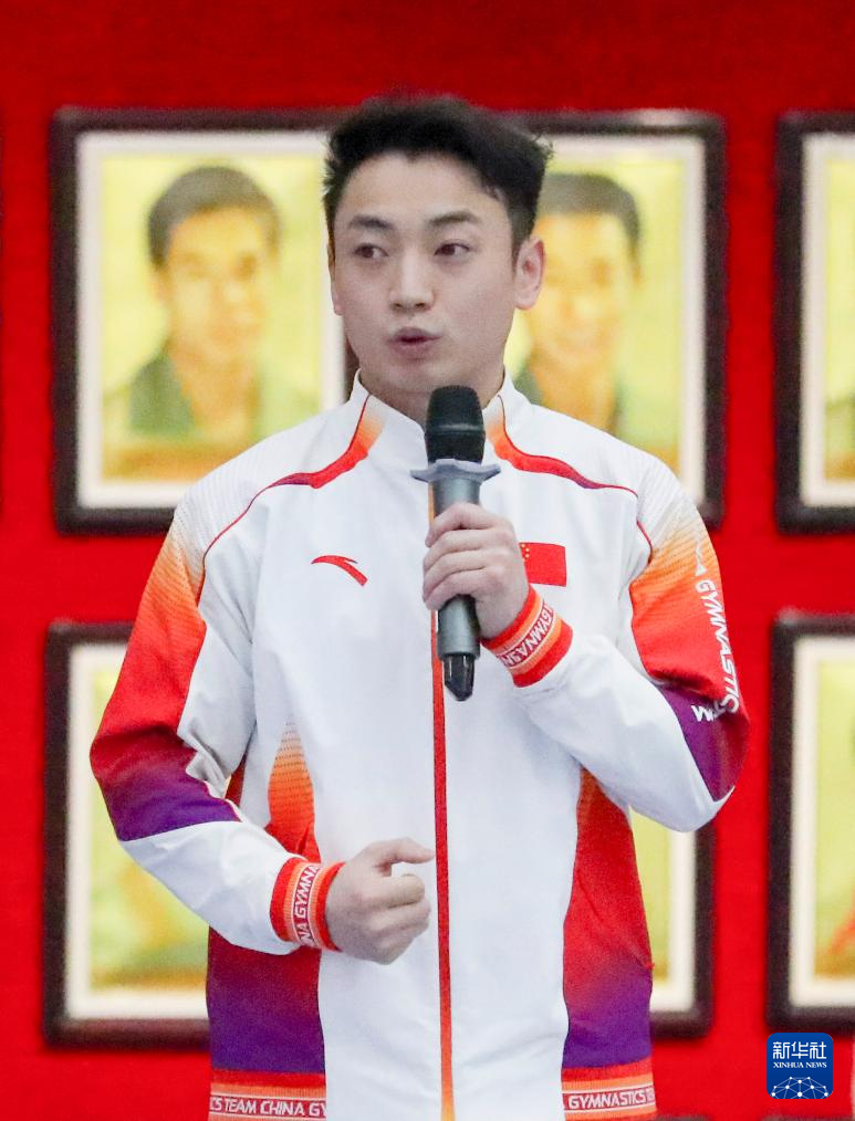 12月22日,再次登榜的中国体操队运动员邹敬园在登榜仪式上发言。