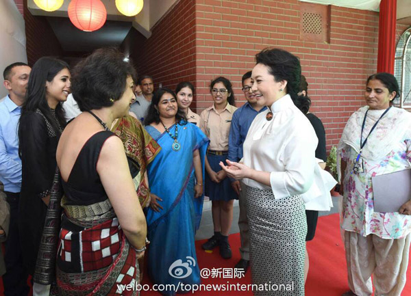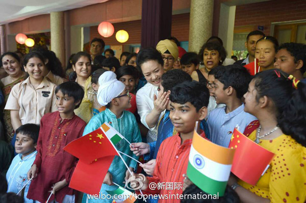 ????離別時,彭麗媛向校長表示感謝:“參觀學校,給我留下非常美好的印象,我會永記心中,會永遠記住孩子們的笑容?!彼龤g迎師生們多到中國走走看看:“我相信,只要踏上中國的土地,你們就會愛上中國。讓我們一起把中印友好永遠傳承下去。”