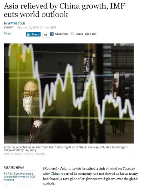 路透社1月20日報道稱中國經(jīng)濟發(fā)展腳步放緩程度仍舊保持在預(yù)期范圍內(nèi),并沒有許多人想象中的那樣嚴(yán)重,使得整個亞洲市場松了口氣。