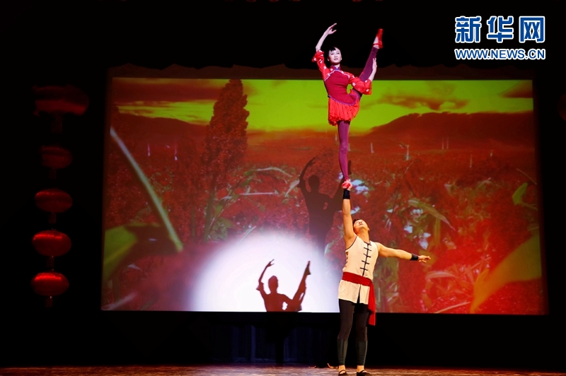 3月2日,在美國密歇根州底特律市,廣東省藝術(shù)團(tuán)的演員在2018年“歡樂春節(jié)--祖國陪你過年”活動(dòng)中表演雜技《肩上芭蕾》。新華網(wǎng)發(fā)(圖片由中國駐芝加哥總領(lǐng)館提供)