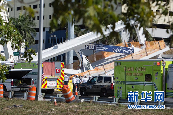 新華社華盛頓3月15日電(記者孫丁 劉陽)美國佛羅里達(dá)州邁阿密市一座過街天橋15日坍塌,當(dāng)?shù)孛襟w報道說事件造成多人死傷。