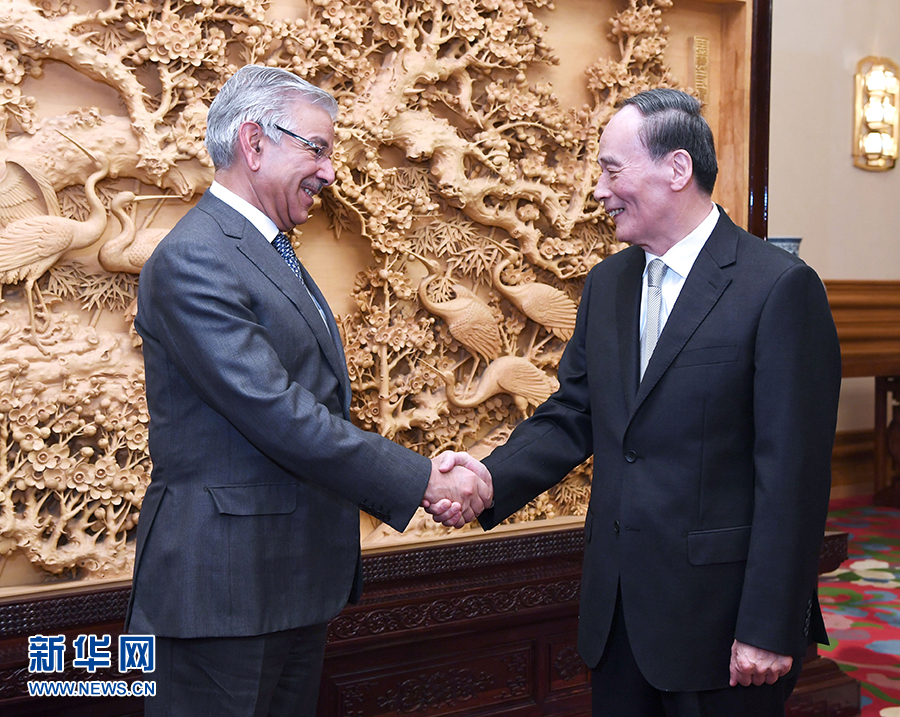 4月24日,國家副主席王岐山在北京中南海會(huì)見巴基斯坦外長阿西夫。新華社記者饒愛民攝