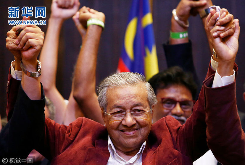 當(dāng)?shù)貢r間2018年5月9日,馬來西亞吉隆坡,馬哈蒂爾代表希望聯(lián)盟召開新聞發(fā)布會。9日,馬來西亞國會大選結(jié)束。10日凌晨官方點(diǎn)票結(jié)果顯示,前總理馬哈蒂爾(Mahathir)帶領(lǐng)的希望聯(lián)盟取得112席簡單多數(shù)國會議席,足以籌組政府及勝出大選,并終結(jié)執(zhí)政國民陣線長達(dá)60年的管治。現(xiàn)總理納吉布領(lǐng)導(dǎo)的國民陣線僅獲得76席。(圖片來源:視覺中國)