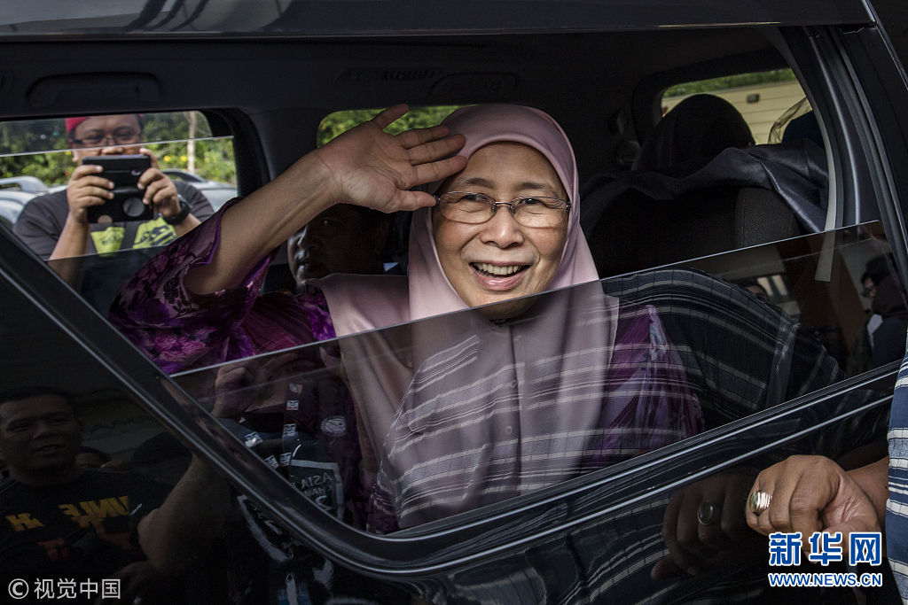 當(dāng)?shù)貢r(shí)間2018年5月11日,馬來西亞吉隆坡,馬來西亞前副總理安瓦爾的夫人Wan Azizah探視獄中的丈夫。馬來西亞新當(dāng)選總理馬哈蒂爾表示,最高元首已經(jīng)同意特赦前副總理安瓦爾。