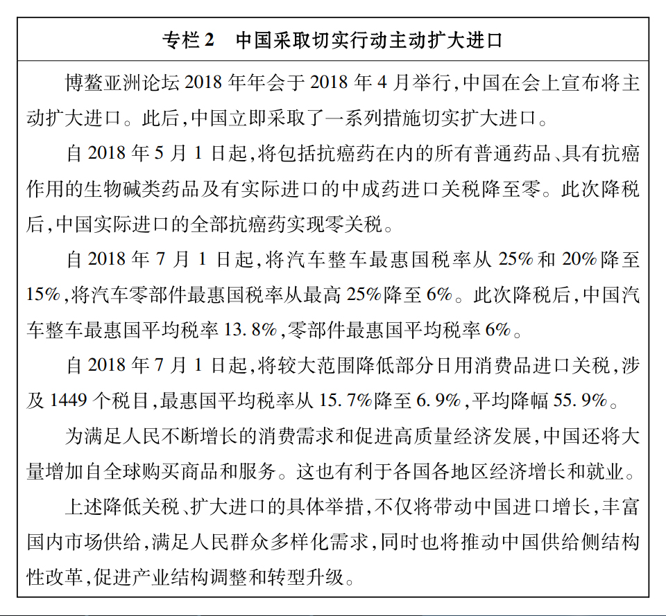 中國將以更大力度、更高水平的對外開放促進(jìn)全球共同發(fā)展,為各國分享中國紅利創(chuàng)造更多機會。中國愿與全球貿(mào)易伙伴一道,推動經(jīng)濟全球化朝著更加開放、包容、普惠、平衡、共贏的方向發(fā)展,讓不同國家、不同階層、不同人群共享經(jīng)濟全球化的好處。