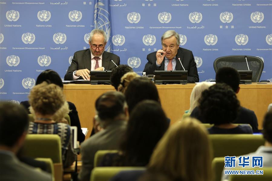 7月12日,在位于紐約的聯(lián)合國總部,聯(lián)合國秘書長古特雷斯(右)出席記者招待會。聯(lián)合國秘書長古特雷斯12日舉行記者招待會,強調(diào)多邊主義和基于規(guī)則的國際關系對于應對全球挑戰(zhàn)的重要性。新華社記者 李木子 攝
