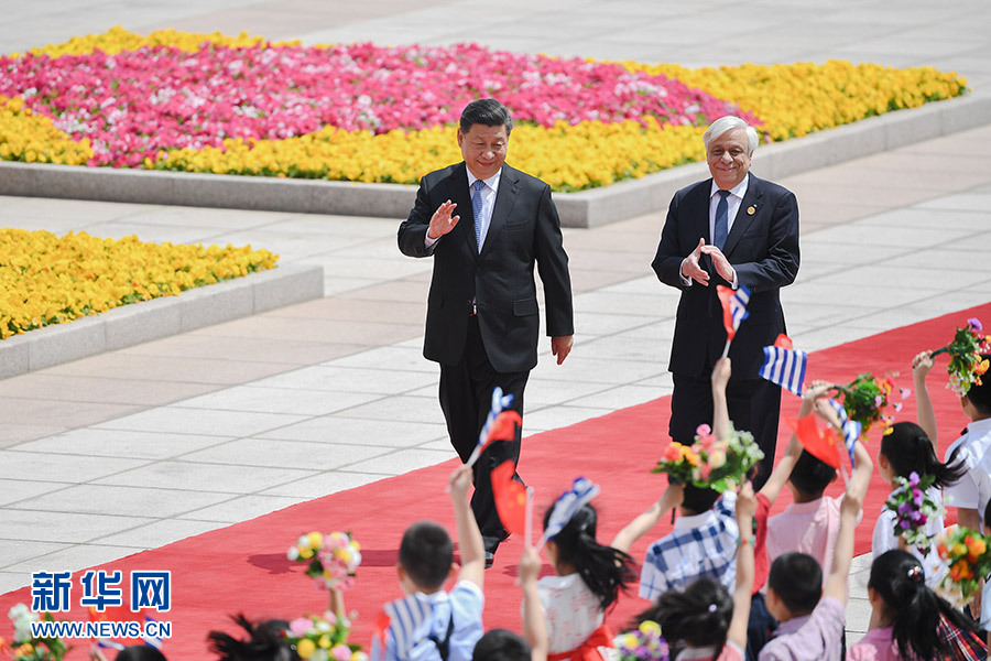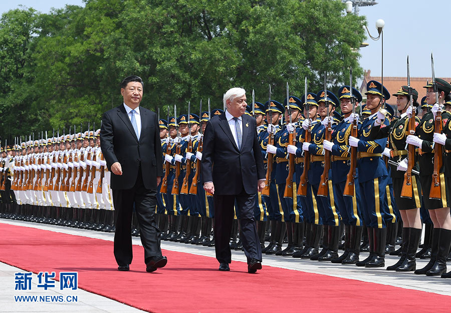 5月14日,國家主席習(xí)近平在北京人民大會(huì)堂同希臘總統(tǒng)帕夫洛普洛斯舉行會(huì)談。這是會(huì)談前,習(xí)近平在人民大會(huì)堂東門外廣場為帕夫洛普洛斯舉行歡迎儀式。 新華社記者 張領(lǐng) 攝