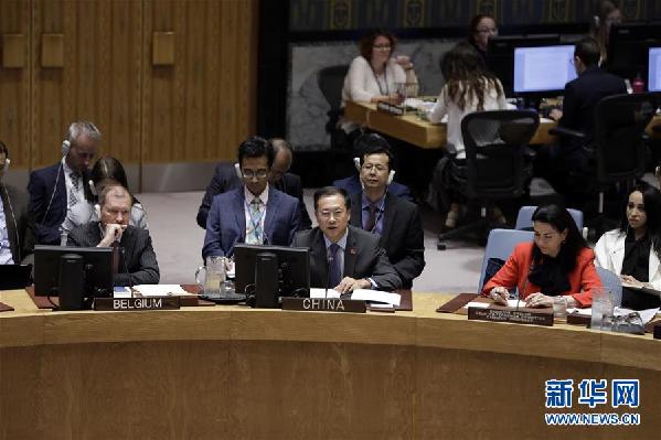 7月9日,在位于紐約的聯(lián)合國總部,中國常駐聯(lián)合國代表馬朝旭(前排中)在聯(lián)合國安理會就國際恐怖主義與有組織犯罪關(guān)聯(lián)問題舉行的公開辯論會上發(fā)言。中國常駐聯(lián)合國代表馬朝旭9日說,中國開展的反恐和去極端化斗爭,有效遏制了恐怖活動多發(fā)頻發(fā)勢頭,最大限度保障了各族人民群眾的生存權(quán)、發(fā)展權(quán)等基本權(quán)利。新華社記者李木子攝