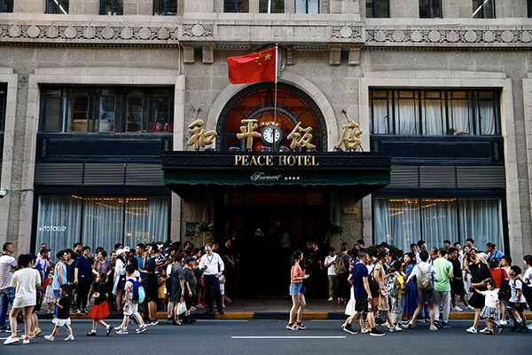 夜幕降臨,在燈光的輝映下,和平飯店更顯滄桑與榮耀。這座已有90年歷史的飯店曾經(jīng)見證過(guò)許多中美兩國(guó)交往的重要場(chǎng)景,不僅老布什、克林頓、奧巴馬等多位美國(guó)前政要曾來(lái)過(guò)這里,1971年美國(guó)乒乓代表團(tuán)訪問(wèn)中國(guó)時(shí),也曾住在這里。