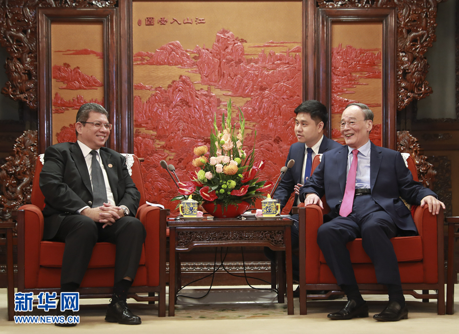 9月12日,國家副主席王岐山在北京中南海會(huì)見馬來西亞外長賽夫丁。 新華社記者 丁林 攝