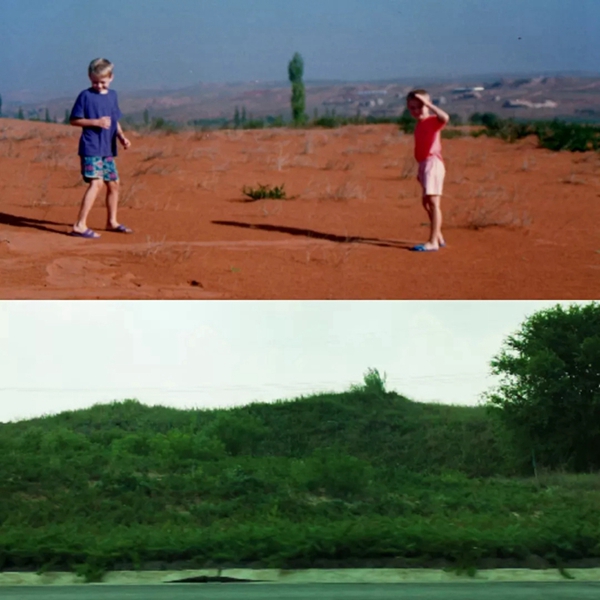 上圖為1994年拍攝的中國(guó)西部沙漠。下圖為2019年拍攝的同一地點(diǎn)。潘維廉供圖