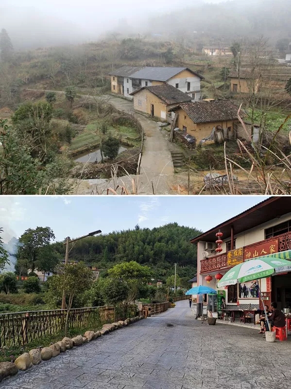 上圖:脫貧前的井岡山市神山村一角,攝于2016年1月。下圖:現(xiàn)在的井岡山市神山村一角,攝于2019年9月。新華社發(fā)