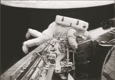 一系列準(zhǔn)備工作妥當(dāng)后,他終于打開(kāi)了外部艙門(mén),進(jìn)入了距離地球100英里的太空。此時(shí),只有一條16英尺長(zhǎng)的繩子,連結(jié)著他和太空艙。這是人類(lèi)第一次在脫離飛船的宇宙中鳥(niǎo)瞰地球,太空的浩渺讓列昂諾夫?yàn)橹@嘆,那里的景色讓他覺(jué)得有“難以形容的美麗”。