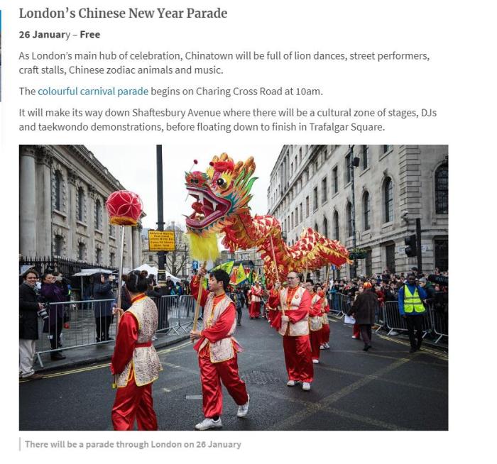 英國倫敦將于1月26日舉行舞龍舞獅的街頭表演。來源:英國metro都市地鐵報(bào)紙網(wǎng)站報(bào)道截圖