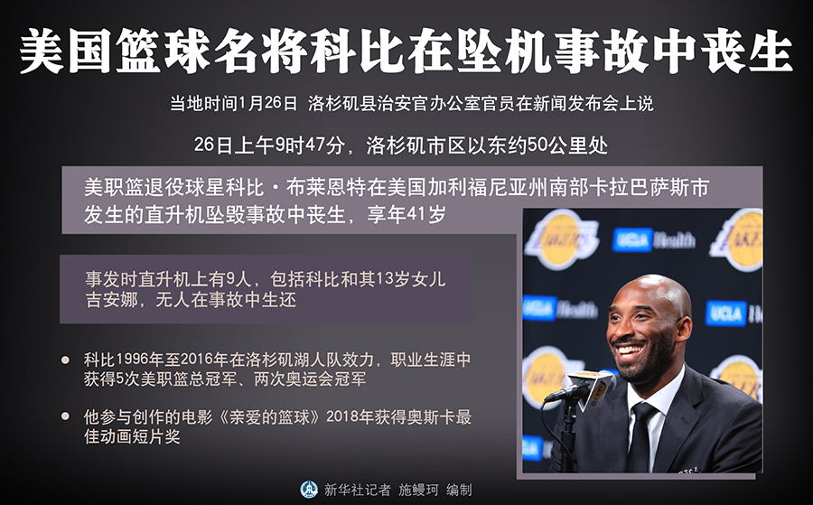 圖表:美國籃球名將科比在墜機事故中喪生 新華社記者 施鰻珂 編制。