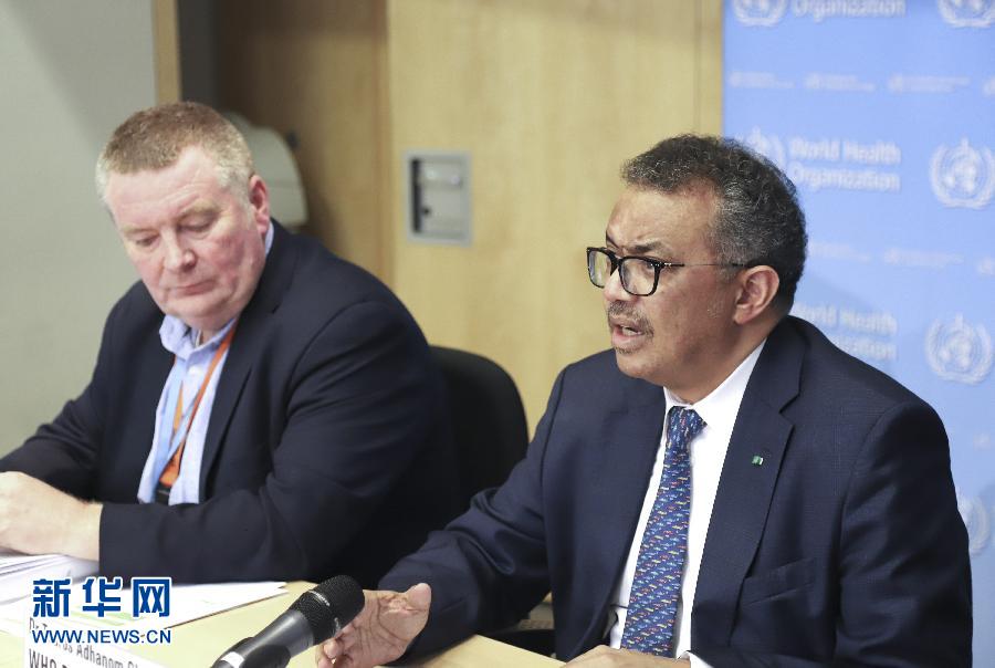 3月5日,在瑞士日內(nèi)瓦,世界衛(wèi)生組織總干事譚德塞(右)在世衛(wèi)組織例行記者會上發(fā)言。世界衛(wèi)生組織總干事譚德塞5日呼吁,各國應(yīng)調(diào)動(dòng)并協(xié)調(diào)政府各部門間的行動(dòng),以“全政府”參與的方式應(yīng)對新冠肺炎疫情。 新華社記者 陳俊俠 攝