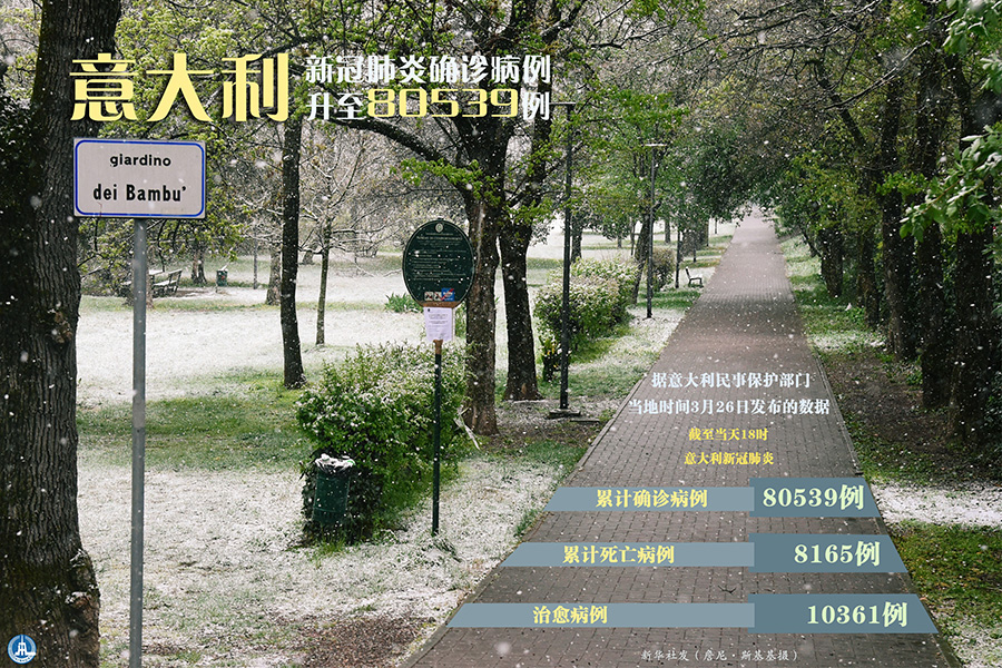 新華社羅馬3月26日電(記者李潔)據(jù)意大利民事保護(hù)部門26日發(fā)布的數(shù)據(jù),截至當(dāng)天18時,意大利累計(jì)新冠肺炎確診病例升至80539例,累計(jì)死亡病例8165例,治愈病例10361例。